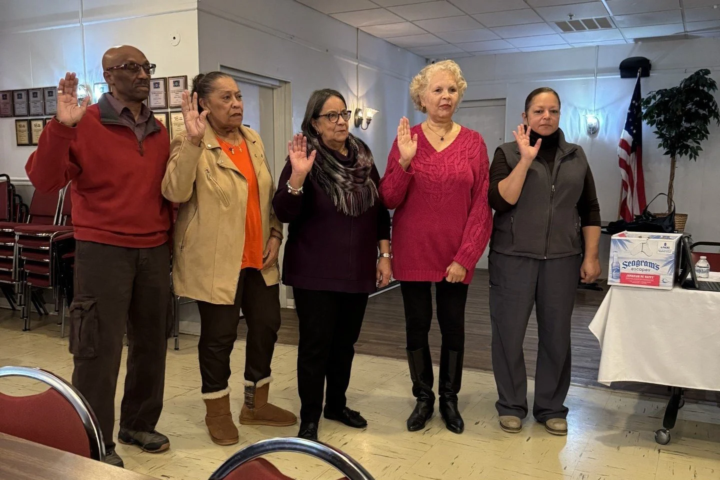 LEFT TO RIGHT: PRESIDENT: DAN CORRIA, VICE PRESIDENT: ELAINE GONSALVES, TREASURER: JULIE COELHO, RECORDING SECRETARY: PAM THIMAS, CORRESPONDING SECRETARY: MICHELLE LEE HAROLD